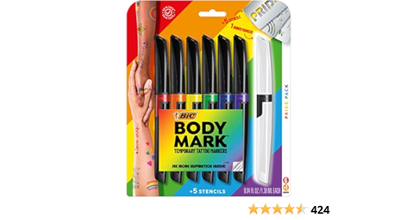 Bodymark By Bic Temporary Tattoo Marker Pride Pack Skin Safe Mixed Brush Tip Fine Tip Assorted Colors 6 Pack 1 Bonus Marker Amazon Com Au Everything Else
